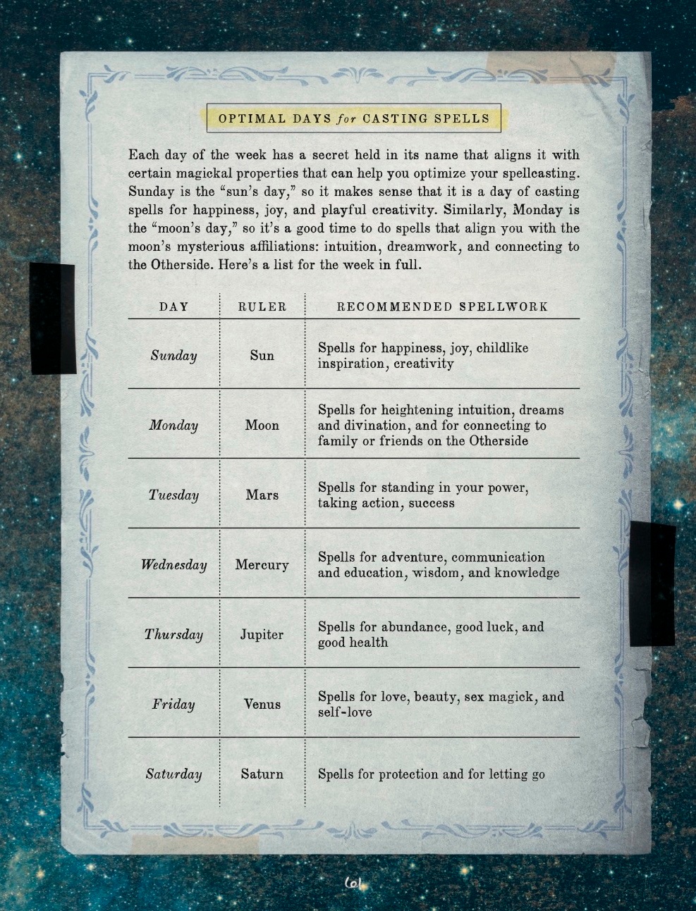 Optimal Days for Casting Spells